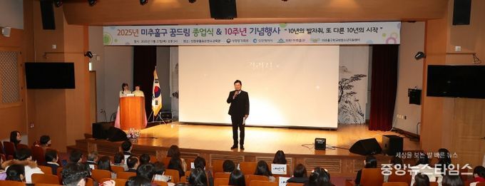 (중앙뉴스타임스 = 방재영 기자) 인천 미추홀구학교밖청소년지원센터(센터장 최문주)는 지난 27일 ‘2025년 종업식 및 개소 10주년 기념행사’를 열고 청소년과 관계 기관 관계자 등 130여 명이 참석한 가운데 센터의 지난 10년을 돌아보는 시간을 가졌다.
