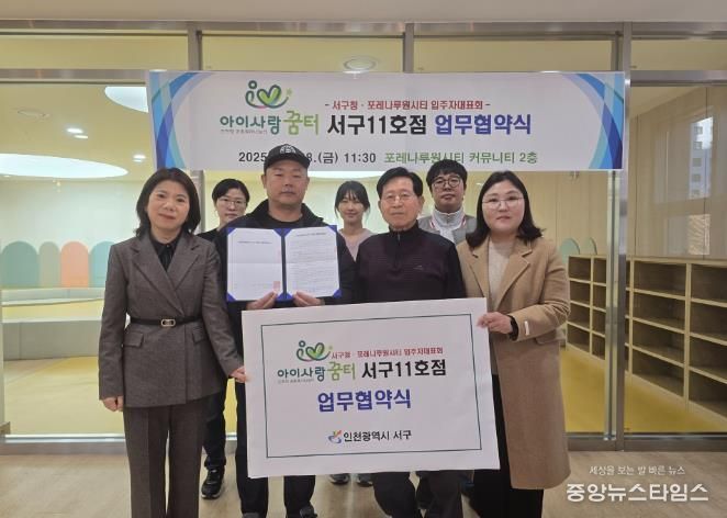 (중앙뉴스타임스 = 방재영 기자) 인천 서구와 포레나루원시티 입주자대표회는 지난 11월 28일 아파트 관리동에 ‘아이사랑꿈터’ 설치를 위한 무상임대차계약을 체결했다.
