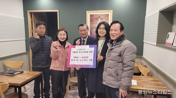 (중앙뉴스타임스 = 방재영 기자) 인천 남동구 구월3동 행정복지센터는 성마을교회(담임목사 권동희)로부터 취약계층의 따뜻한 겨울나기 지원을 위한 성금 100만 원을 기탁받았다고 2일 밝혔다.