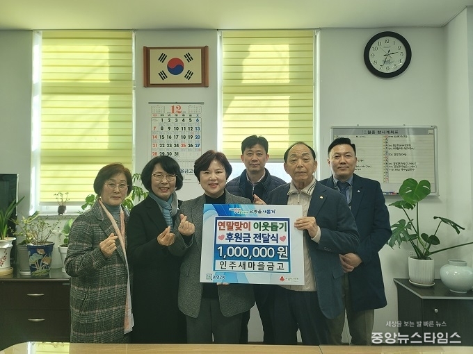 (중앙뉴스타임스 = 방재영 기자) 인천 남동구 논현2동 행정복지센터는 인주새마을금고(이사장 이종만)로부터 연말을 맞아 소외계층을 돕기 위해 후원금 100만 원을 전달받았다고 4일 밝혔다.