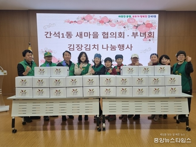 행사에서는 간석1동 새마을부녀회와 협의회 회원, 각 자생단체회원 등 30여 명이 서로 마음을 모아 정성껏 김치를 담갔다.