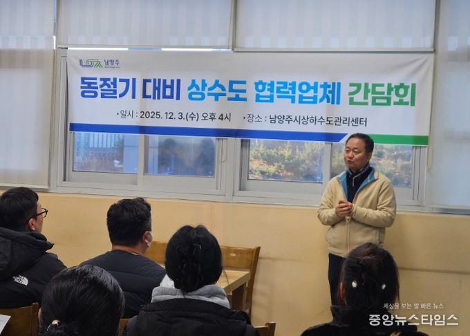 (중앙뉴스타임스 = 방재영 기자) 남양주시는 지난 12월 3일 다가오는 겨울철 한파로 인한 동파 및 누수 발생에 대비해, 상수도 협력업체들과 간담회를 개최했다고 밝혔다.