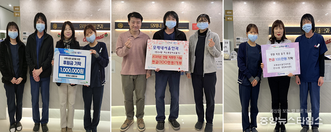 (중앙뉴스타임스 = 방재영 기자)인천 남동구 만수2동, 만수4동, 만수6동 행정복지센터는 모래내서울안과로부터 겨울철 취약계층 지원을 위해 각각 100만 원씩 성금을 기탁받았다고 5일 밝혔다.