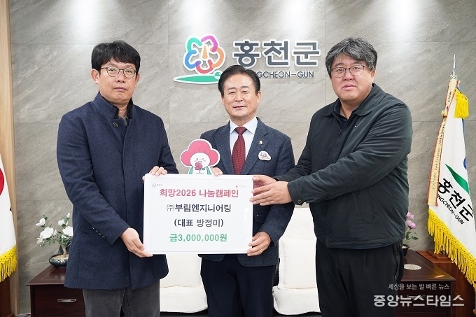 (중앙뉴스타임스 = 방재영 기자) 부림엔지니어링(대표 방정미)이 9일 홍천군청에 방문해 이웃돕기 성금 300만 원을 기탁했다.