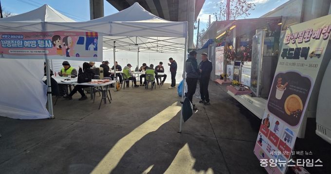 (중앙뉴스타임스 = 방재영 기자) 인천 부평구는 지난 9일 구산동 재활용선별장에서 야외근로자 120명을 대상으로 한랭질환 예방 겨울 간식차를 운영했다고 밝혔다.