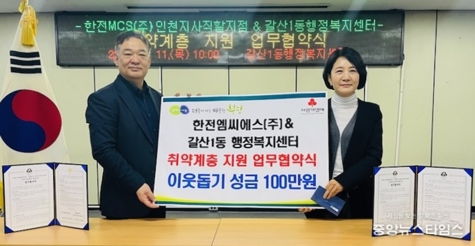(중앙뉴스타임스 = 방재영 기자) 인천 부평구 갈산1동은 11일 한전MCS(주)와 취약계층 지원을 위한 업무협약을 체결했다.