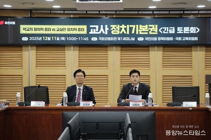 (중앙뉴스타임스 = 방재영 기자) 국민의힘 국회의원들이 교사 정치기본권 논의가 헌법에 명시된 교육의 정치적 중립성을 침해할 수 있는 만큼, 충분한 공론화 과정을 통한 공감대 형성과 학생·학부모의 불안 해소로 교육의 신뢰성이 전제돼야 할 것을 주장했다.