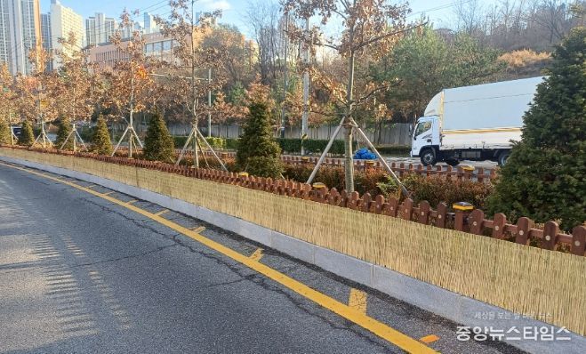 (중앙뉴스타임스 = 방재영 기자) 인천 미추홀구시설관리공단은 겨울철 한파와 강풍으로 인한 식재지 피해를 예방하기 위해 송림로, 숭의오거리 등 신규 식재 가로녹지 구간을 대상으로 지난 9일부터 3일간 방풍벽 설치와 보온 거적 작업을 실시했다.