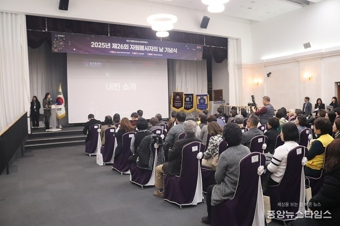 (중앙뉴스타임스 = 방재영 기자) 재단법인 용인시자원봉사센터는 지난 10일 시청 컨벤션홀에서 ‘제26회 자원봉사자의 날 기념식’을 개최하고, 지역 곳곳에서 나눔과 실천을 이어온 자원봉사자들에게 감사의 마음을 담아 표창장을 수여했다.