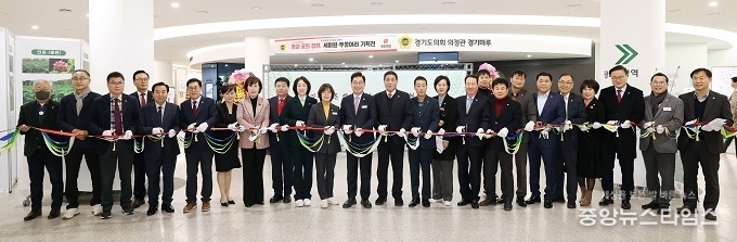 (중앙뉴스타임스 = 방재영 기자) 경기도의회 국민의힘(대표의원 백현종)이 지난 10일부터 17일까지 8일간 도의회 1층 로비에서 진행하는 ‘물과 꽃의 정원, 세미원’ 기획전이 12일 개막했다.