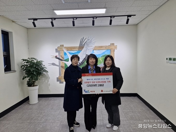 (중앙뉴스타임스 = 방재영 기자) 디자인아트고광균 명임숙 대표는 지난 15일 인천 계양구 계양2동 행정복지센터(동장 서명희)에 방문해 계양2동의 어려운 이웃을 돕고자 이웃돕기 성금 300만 원을 기탁했다. 이번 성금은 저소득 가정을 위한 복지사업 기금으로 활용될 예정이다.
