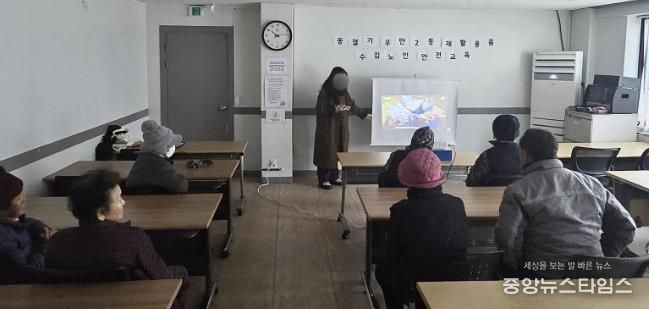 이번 교육은 재활용품 수집 과정에서 발생할 수 있는 교통사고 및 안전사고를 예방하고, 한파에 취약한 어르신들의 건강관리를 돕기 위해 마련됐으며, 안전 관련 동영상 시청을 통해 차도 통행에서 발생할 수 있는 사고 위험성을 안내하고, 재활용품 수집 시 유의 사항과 동절기 한파 대비 건강관리 요령을 중심으로 설명이 이루어졌다.