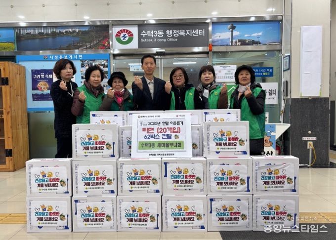 홍종민 수택3동장은 “수택3동 새마을부녀회의 꾸준한 나눔 덕분에 이번 겨울이 한층 더 따뜻해졌다”라며 “매년 연말마다 지역사회와 주민들을 위해 봉사해 주시는 새마을부녀회 회원 여러분께 깊은 감사의 말씀을 드린다”라고 전했다.