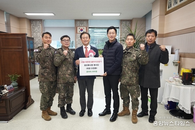 (중앙뉴스타임스 = 방재영 기자) 홍천軍사랑 봉사단은 19일 어려운 이웃돕기 성금 50만 원을 기탁했다.