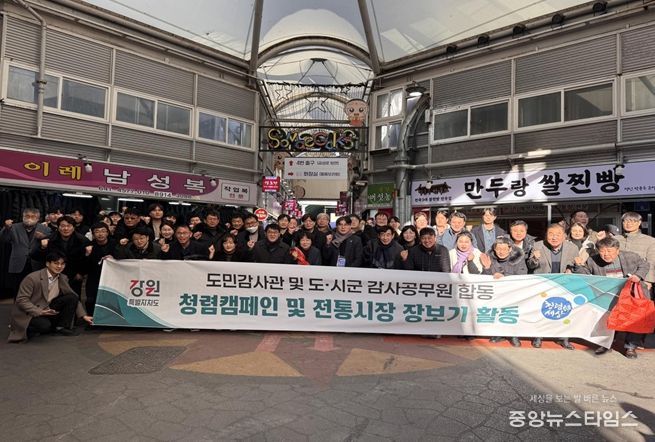 (중앙뉴스타임스 = 방재영 기자) 강원특별자치도 감사위원회는 12월 19일 ‘2025년 도민감사관 워크숍’의 일환으로 강릉 중앙시장을 방문해 도민감사관과 도·시군 감사 공무원이 함께하는 전통시장 장보기 행사를 실시했다.