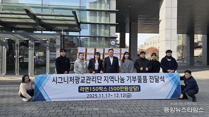 또, 시그니처광교 지식산업센터 관리단도 500만원 상당의 라면 150박스를 수지구청에 기탁했다. 이 물품은 10일 열린 ‘시그니처광교 FESTA’에 참여한 입주기업들이 자발적으로 모았다.