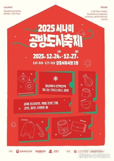 (중앙뉴스타임스 = 방재영 기자) (재)강릉문화재단 강릉시문화도시지원센터는 오는 24일부터 27일까지 나흘간 강릉 서부시장 2층에서 2025 시나미 공방도시축제를 개최한다.