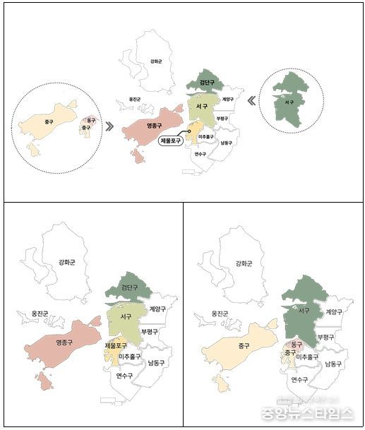 인천형 행정체제 개편은 현재의 중구와 동구를 ‘제물포구’와 ‘영종구’로 통합·조정하고, 서구에서 ‘검단구’를 분리하는 것으로, 인천의 행정체제를 기존 2군·8구에서 2군·9구로 확대하는 사업이다.