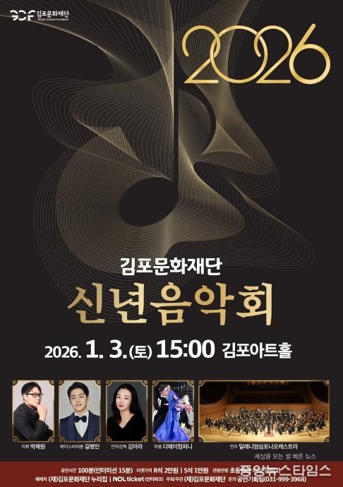(중앙뉴스타임스 = 이광운 기자) (재)김포문화재단이 새해 첫 무대로 내년 1월 3일 김포아트홀에서 '2026년 김포문화재단 신년 음악회'를 개최한다고 밝혔다.
