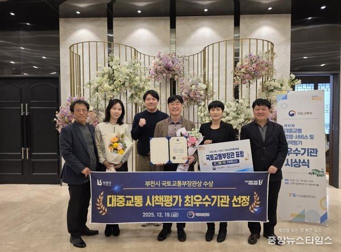 (중앙뉴스타임스 = 방재영 기자) 부천시는 지난 19일 국토교통부가 실시한 ‘2025년 전국 대중교통 시책 평가’에서 처음으로 최우수기관에 선정돼 국토교통부 장관 표창을 받았다.