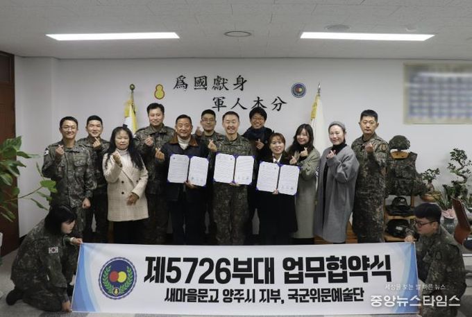 (중앙뉴스타임스 = 방재영 기자) 새마을문고 양주시지부는 지난 12월 19일, 육군 제5726부대에서 군 장병들의 독서문화 확산과 인문학적 소양 증진을 위한 업무협약(MOU)을 체결했다고 밝혔다.
