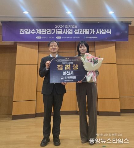 (중앙뉴스타임스 = 방재영 기자) 이천시는 한강수계관리위원회가 실시한 ‘2024 회계연도 한강수계관리기금 성과평가’에서 환경기초시설 운영 분야 장려상을 수상했다고 밝혔다. 이천시는 이번 평가에서 31개 관리청 가운데 3위에 올랐다.