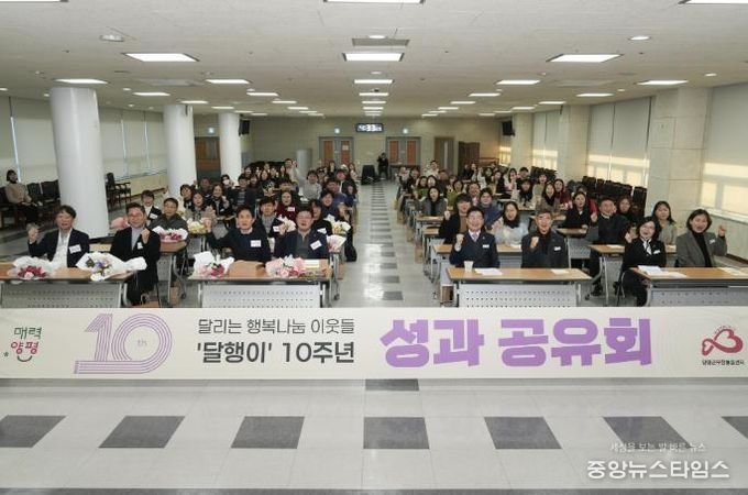 (중앙뉴스타임스 = 방재영 기자) 양평군은 지난 18일 군청 대회의실에서 찾아가는 민관협력 보건복지 서비스 ‘달리는 행복나눔 이웃들’ 사업의 10주년을 기념하는 성과공유회를 성황리에 개최했다고 밝혔다.