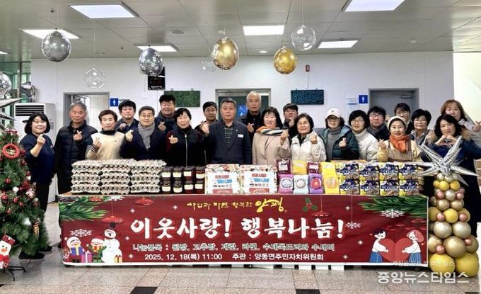 (중앙뉴스타임스 = 방재영 기자) 양동면 주민자치위원회는 지난 18일 양동면 주민자치센터에서 연말을 맞아 이웃사랑과 행복 나눔을 실천하기 위한 물품 나눔 행사를 가졌다.