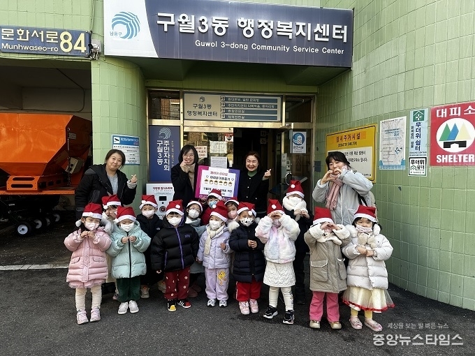 어린이집 선생님과 아이들은 구월3동을 방문해 성금을 전달하며 나눔을 실천했다.