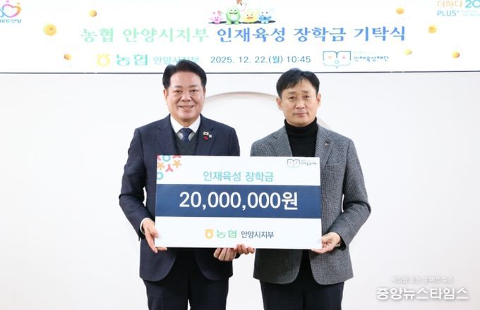 (중앙뉴스타임스 = 방재영 기자) 안양시 인재육성재단이 지난 22일 농협 안양시지부로부터 인재육성을 위한 장학금 2천만 원을 기탁받았다고 23일 밝혔다.