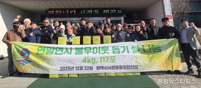 (중앙뉴스타임스 = 방재영 기자) 평택시 서정동 통장협의회는 지난 22일 연말연시를 맞아 어려운 이웃과 취약계층에 대한 사랑 나눔을 실천하고자 연말연시 불우이웃 돕기 쌀 나눔 행사를 진행했다.