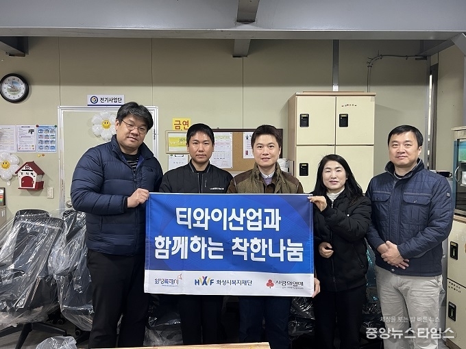 (중앙뉴스타임스 = 방재영 기자) 티와이산업(대표이사 권칠범)은 23일 관내 장애인들을 돕기 위해 포터블스피커 1대와 의자 11개(금 200만원 상당)를 화성시복지재단을 통해 기부하며 따뜻한 나눔을 실천했다.