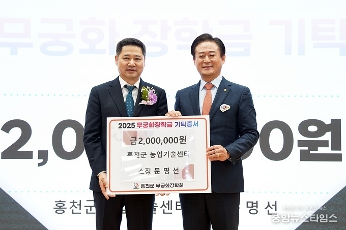 (중앙뉴스타임스 = 방재영 기자) 홍천군 농업기술센터 문명선 소장이 23일 홍천군 인재 육성을 위한 무궁화장학금 200만 원을 기탁했다.