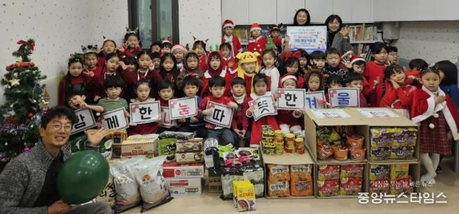 이날 원생들이 각 가정에서 가져온 50만원 상당의 식료품(햇반, 백미, 라면, 참치캔 등)들은 아이들이 있는 어려운 가정 30가구에 월말까지 모두 전달할 예정이다.