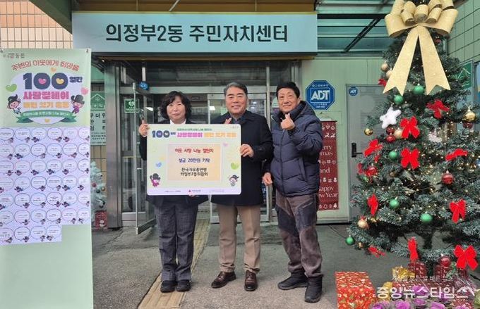 (중앙뉴스타임스 = 방재영 기자) 의정부시 의정부2동주민센터는 12월 23일 한국자유총연맹 의정부2동위원회가 ‘100일간 사랑릴레이 배턴 잇기’에 동참해 취약계층을 위한 성금 20만 원을 전달했다고 밝혔다.