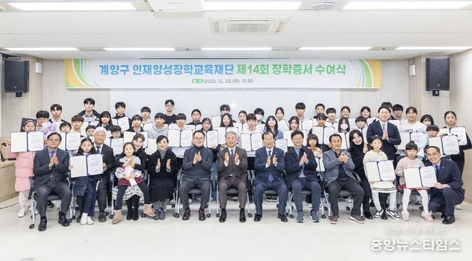 올해 하반기에 14회째 장학생을 선발한 계양구 인재양성장학교육재단은 2019년부터 총 921명에게 약 10억 6200만 원의 장학금을 지원했으며, 2026년 상반기 장학생 모집은 내년 3월에 공고할 계획이다.