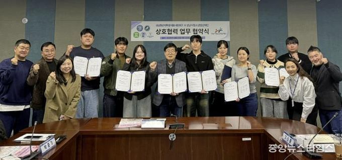 (중앙뉴스타임스 = 방재영 기자) 성남시청소년청년재단은 12월 23일 성남지역 5개 대학 총학생회가 포함된 ‘성남청년 대학생 대표 네트워크’와 업무협약을 체결하고, 2026년도 청년사업을 공동으로 추진한다고 밝혔다.