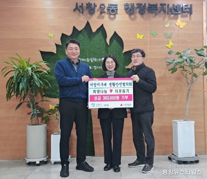(중앙뉴스타임스 = 방재영 기자) 인천 남동구 서창2동 행정복지센터는 서창지구대 생활안전협의회(회장 이범홍)에서 어려운 이웃을 돕기 위해 성금 30만 원을 기탁했다고 24일 밝혔다.