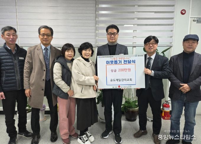 (중앙뉴스타임스 = 방재영 기자) 공도제일감리교회는 12월 24일 지역사회의 어려운 이웃을 돕기 위해 공도읍에 기부금 200만원을 전달했다.