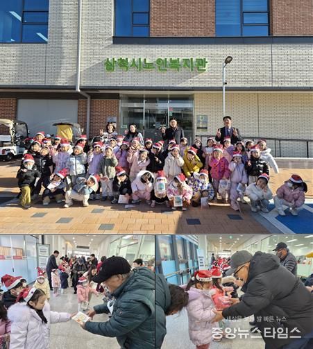 이번 행사는 연말을 맞아 세대 간 교류와 나눔의 의미를 전하고자 마련됐으며, 어린이집 원아들은 직접 만든 크리스마스 카드와 손난로를 어르신들께 전달하며 따뜻한 마음을 전했다.