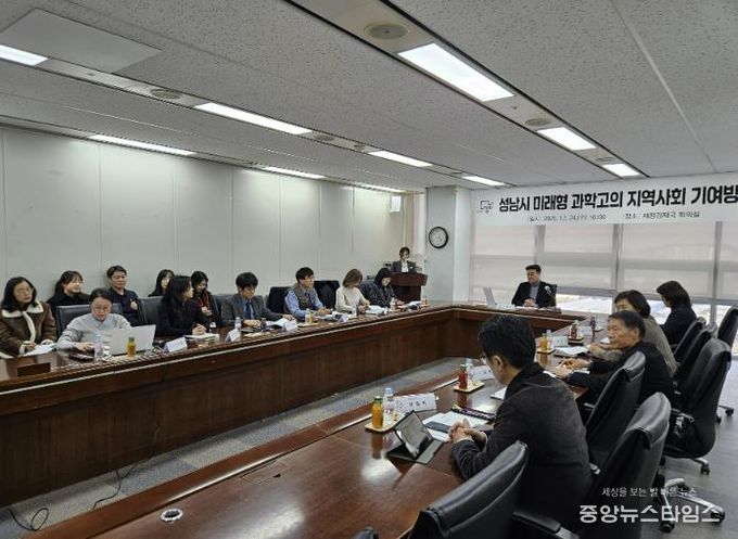 (중앙뉴스타임스 = 방재영 기자) 성남시는 지난 24일 ‘미래형 과학고’ 설립에 따른 지역사회 기여방안 마련을 위한 연구 용역 최종보고회를 개최했다.