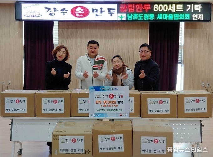 (중앙뉴스타임스 = 방재영 기자)인천 남동구 남촌도림동은 장수손만두(대표 이경호)에서 굴림만두 800여 세트를 기부받았다고 26일 밝혔다.