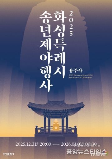 (중앙뉴스타임스 = 이광운 기자) (재)화성시문화관광재단은 시민과 함께 2025년을 마무리하고 2026년을 맞이하는 '2025 화성특례시 송년 제야행사'를 오는 31일 오후 8시부터 용주사 일원에서 개최한다고 26일 밝혔다.