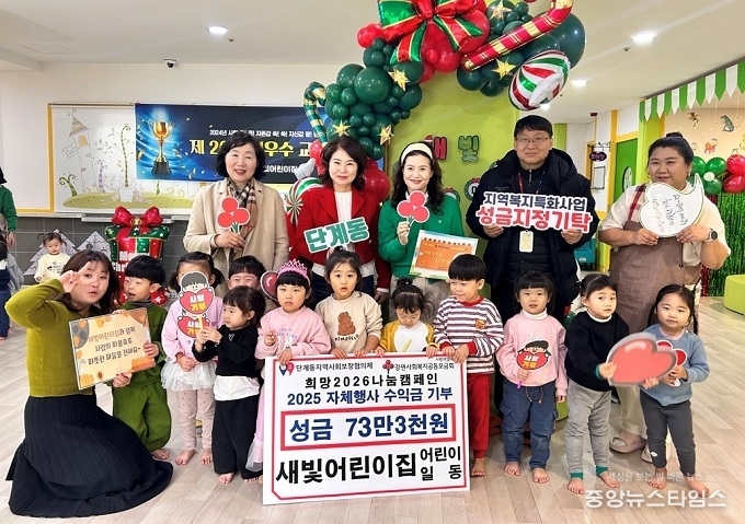 (중앙뉴스타임스 = 방재영 기자) 새빛어린이집(원장 권금희) 원아 일동은 연말연시 ‘희망2026 나눔캠페인’ 불우이웃돕기 성금 73만 3000원을 원주시 단계동 지역복지 특화사업에 기탁했다.