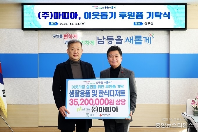(중앙뉴스타임스 = 방재영 기자) 인천 남동구는 최근 ㈜마띠아로부터 취약계층을 위한 생활용품 및 한식 디저트 세트 등 3520만 원 상당의 후원품을 기탁받았다고 29일 밝혔다.