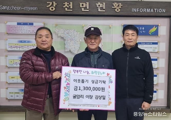 이날 전달식에서 굴암리 이장 김상일씨는 “작은 정성이지만 관내 어려운 이웃들이 추운 겨울을 따뜻하게 보내는 데 도움이 되길 바란다”며, 앞으로도 힘이 닿는 데까지 봉사를 이어가고 싶다“ 고 소감을 밝혔다.