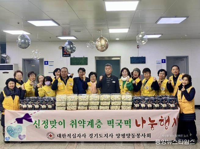 정창업 양동면장은 “연말을 맞아 취약계층을 위해 따뜻한 나눔을 실천해 주신 대한적십자사 양평양동봉사회에 깊이 감사드린다”며 “정성껏 준비한 떡국 한 그릇이 이웃들에게 위로와 희망이 되어 모두가 조금 더 따뜻한 마음으로 새해를 맞이하길 바란다”고 말했다.