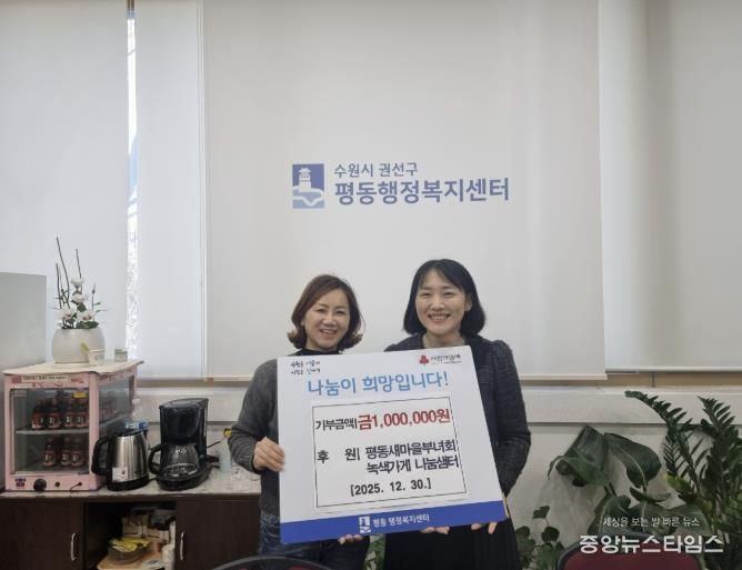 (중앙뉴스타임스 = 방재영 기자) 지난 30일 수원시 평동 부녀회는 관내 어려운 이웃을 돕기 위해 녹색가게 운영을 통해 얻은 수익금 100만 원을 기부했다.