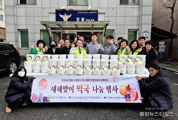 (중앙뉴스타임스 = 방재영 기자) 인천 부평구 부평4·5동은 지난 29일 인천삼산경찰서 중앙지구대 생활안전협의회로부터 지역사회에 온정을 나누기 위한 떡국 100인분을 전달받았다.