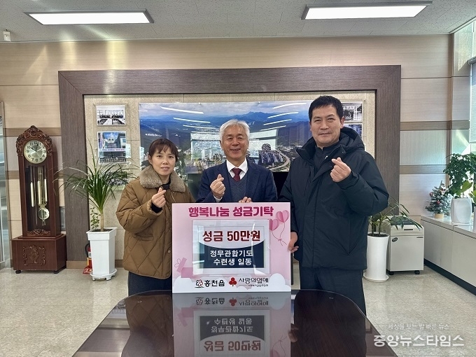 (중앙뉴스타임스 = 방재영 기자) 정무관합기도(관장 지명훈)는 지난 31일 홍천읍 행정복지센터를 방문해 성금 50만 원을 기탁하며 어려운 이웃을 돕는 따뜻한 나눔을 실천했다.